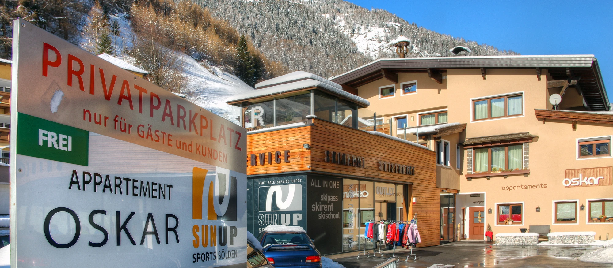Unser Appartementhaus in Sölden liegt direkt neben der Giggijochbahn sowie der Talabfahrt. Umgeben von Sportgeschäften, Skischulen, Skiverleih, uvm.